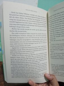 Salah satu bagian favorit saya di dalam buku ini adalah “Ketika berhenti mengejar validasi orang lain dan mulai menghormati dirimu, kau mengirimkan pesan yang kuat pada dunia tentang bagaimana selayaknya kau diperlakukan.”